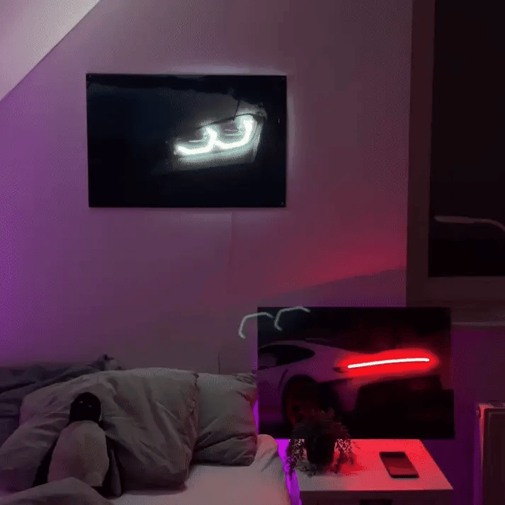 Nos tableaux en plexiglass avec néons LED mettent en valeur les phares, les lignes et le caractère unique de chaque modèle automobile.